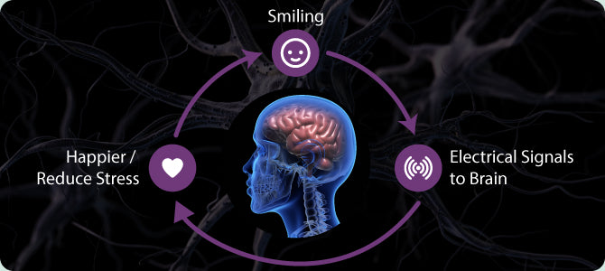 Our brains love a good smile. The act of smiling releases feel-good chemicals that help us relax and lift our mood. So next time you're feeling a bit low, try giving yourself a smile in the mirror - it might just be the pick-me-up you need! Plus, thanks to a cool thing our brains do (hello, mirror neurons!), we often find ourselves smiling when someone else does - kind of like a happiness domino effect!