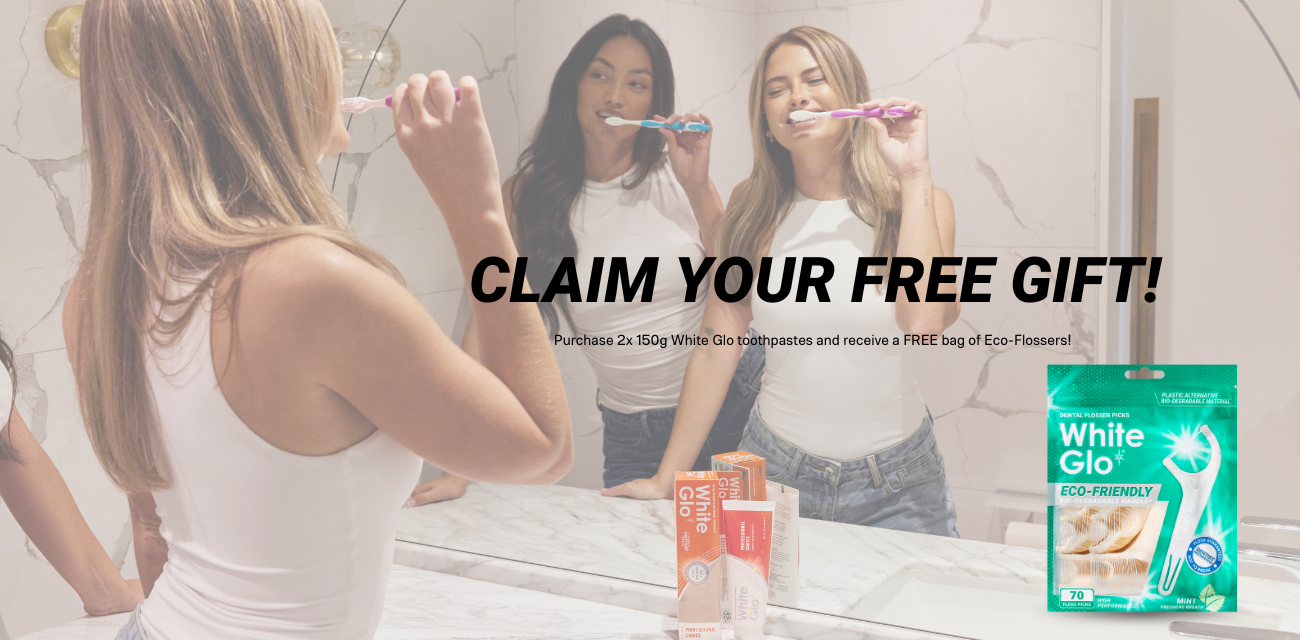 - The Gift With Purchase is 1x bag of White Glo’s Eco-Flosser picks (70pcs). 1 bag will be given free per 2x toothpastes purchased. Customer’s personal information will be collected for the purpose of receiving their free GWP product. Personal information is stored securely and protected from unauthorised access. The customer can request deletion of their personal information at any time. To do so, the customer is to contact win@whiteglo.com
