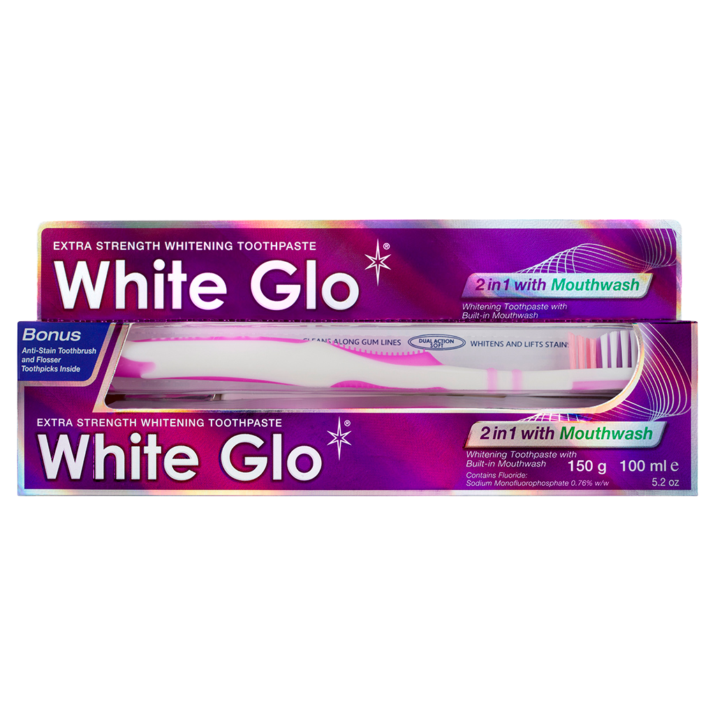 White Glo Toothpastes designed for daily use. Dentists recommend brushing twice daily to provide protection from oral bacteria, cavities, decay and plaque.